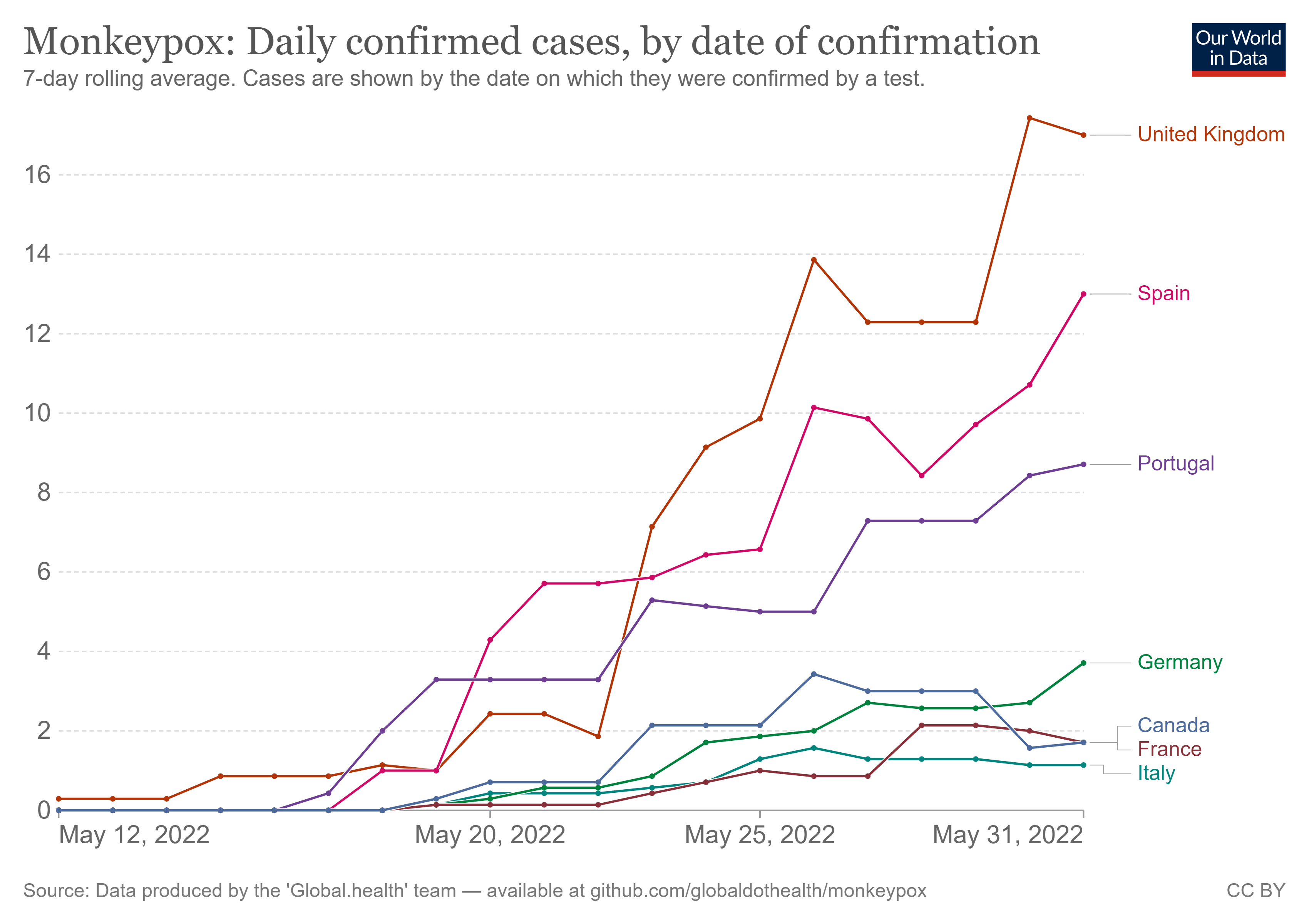Monkeypox is more than doubling every 6 days. I think I used x 2.55 every week in my calculations to arrive at 500,000 cases by the end of July 2022.